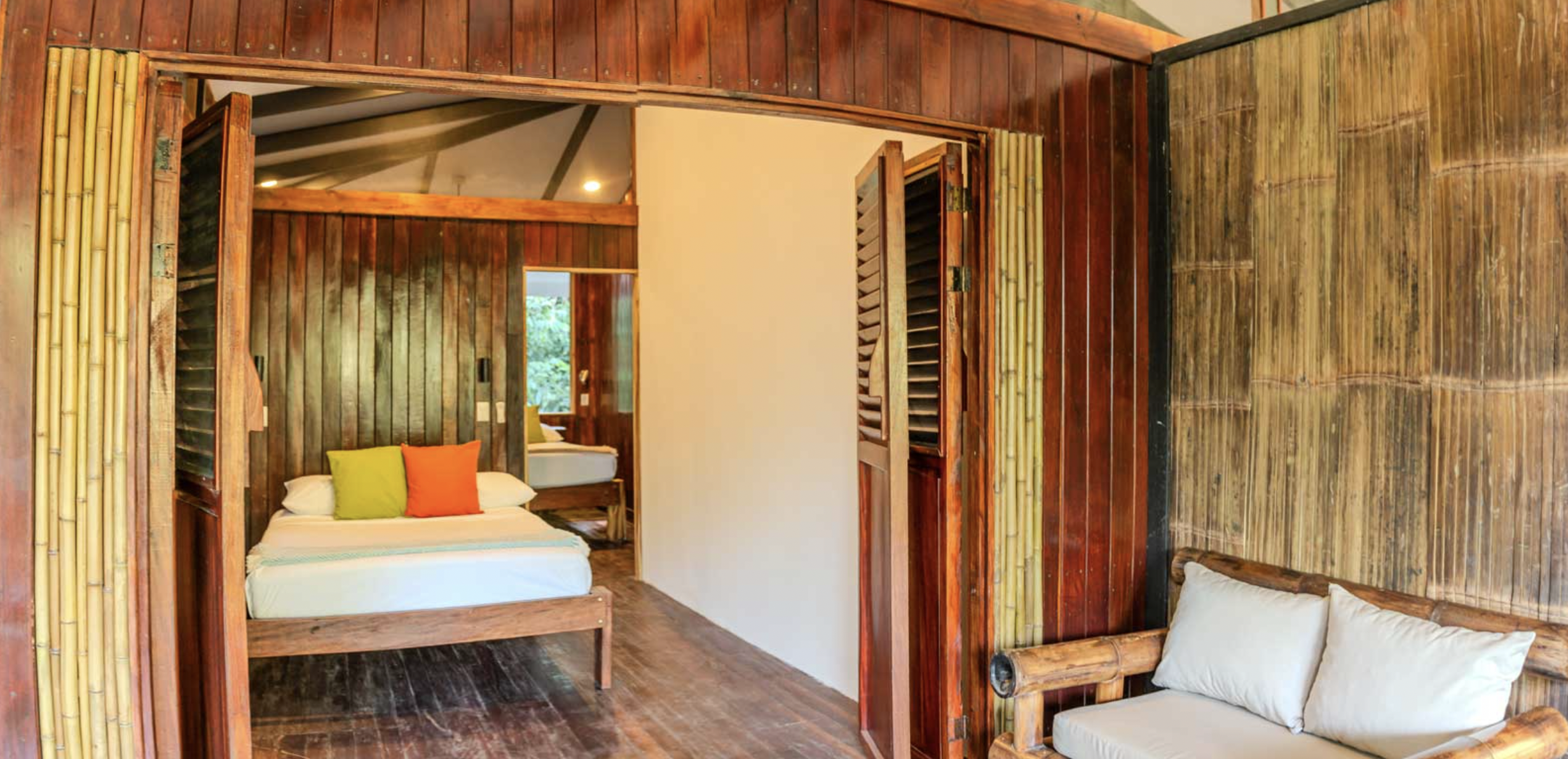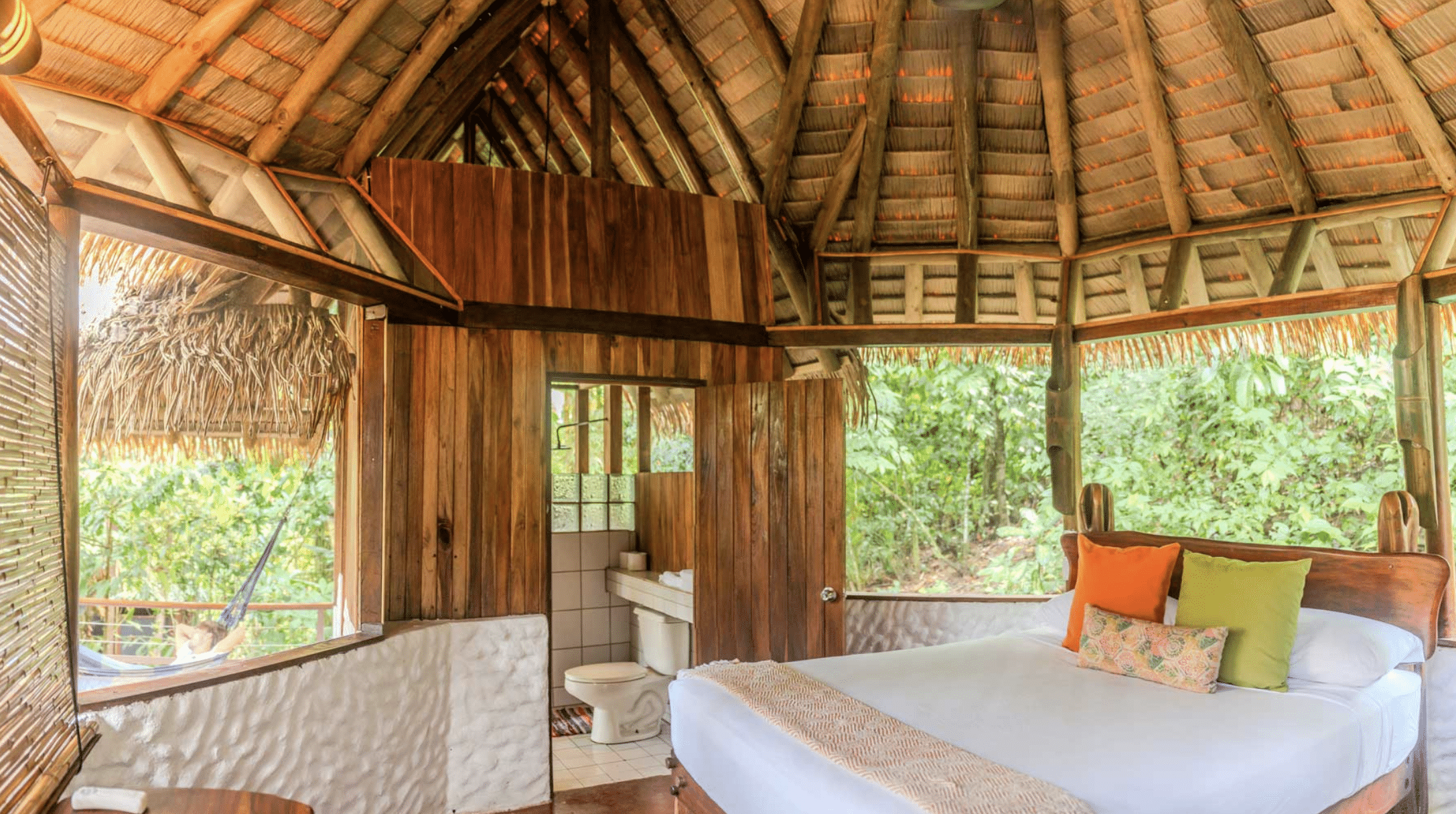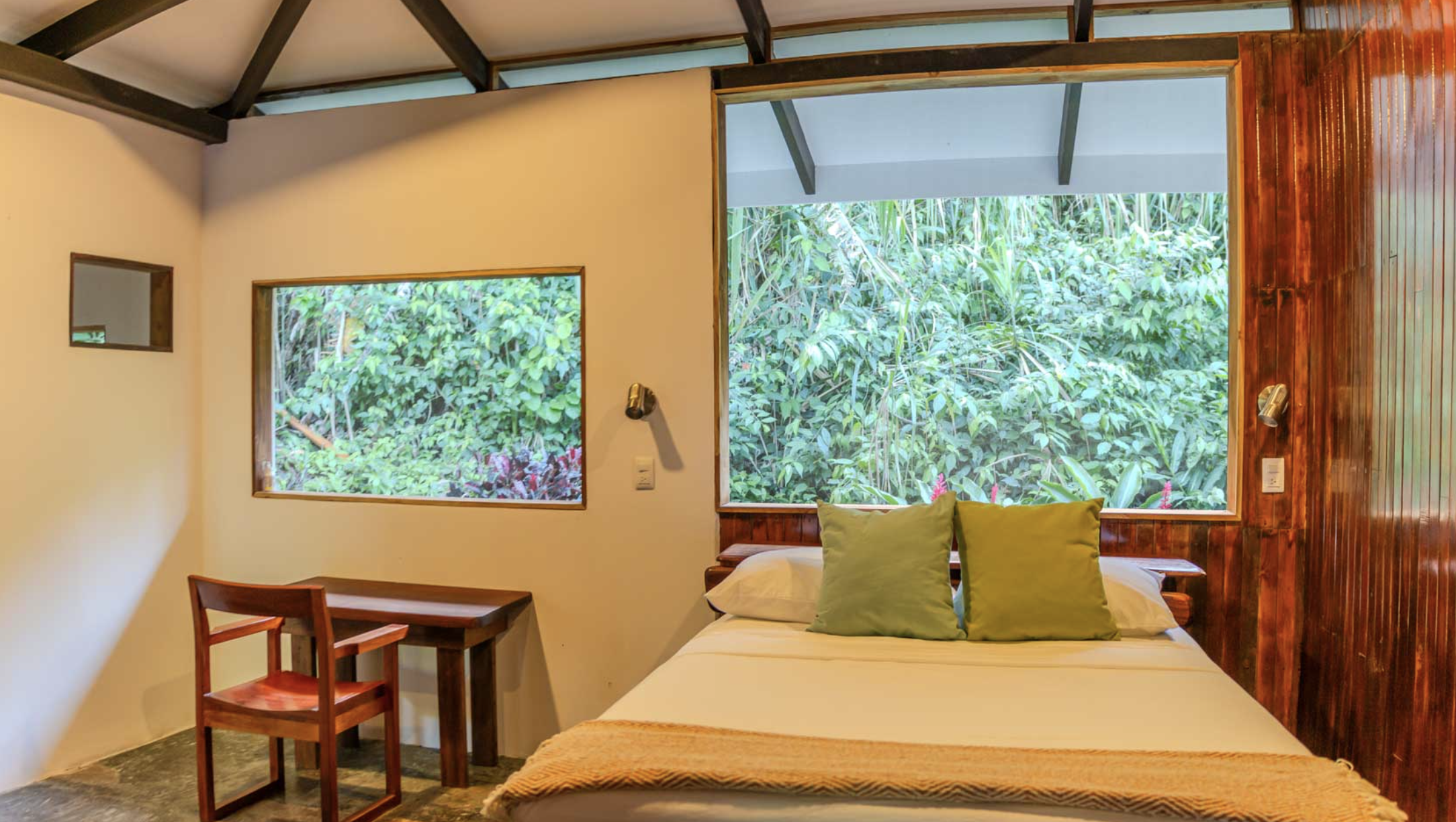 Elles sont équipées d’une salle de bain privée garnie de produits de douche biologiques et locaux, de ventilateurs de plafond à haute efficacité, d’eau chaude, de draps en coton percale 100 %, et d’une terrasse ou d’un balcon avec chaises berçantes, canapés confortables ou hamacs — parfaits pour se détendre face à la nature.